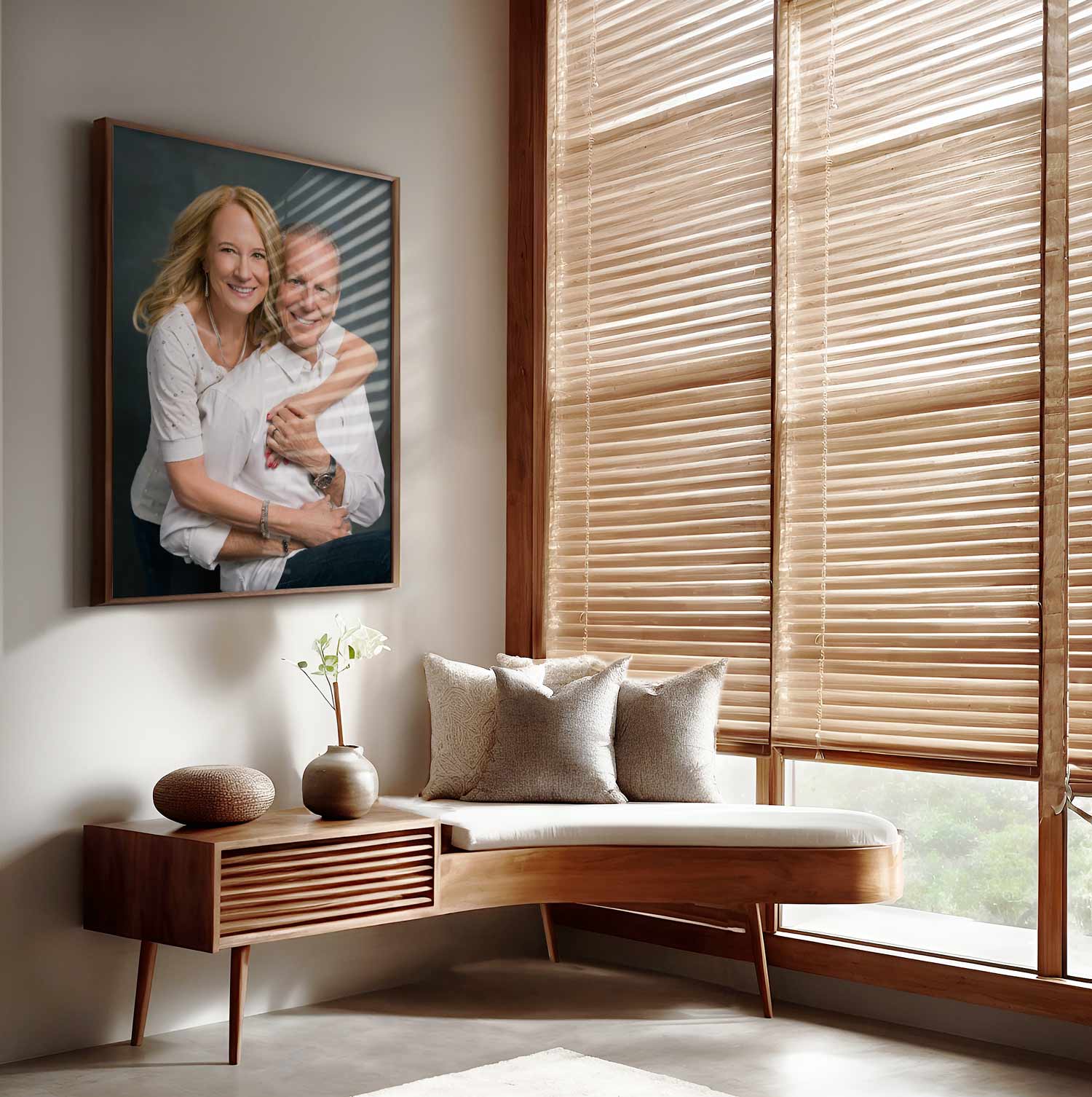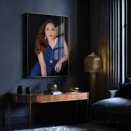 Wall art purchased through our studio is the highest quality and custom made in Italy. Your portraits will receive an additional master retouch because when you blow up images for the wall they will need a bit more retouching love. We can also custom color tone areas of the portrait so that the final portrait blends better with the aesthetics of your decor.